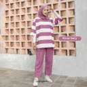 Oneset Kaos Wanita Garis Salur Crayon Stripe Tee